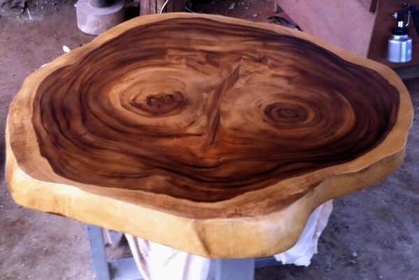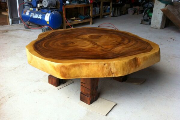 At FlowBKK, we work primarily with reclaimed and salvaged hardwoods sourced throughout Thailand, including rare timber from naturally fallen trees, storm recovery, and government-approved land clearing projects. These exceptional slabs are carefully selected for their grain movement, structure, and character, shaped over decades of natural growth.