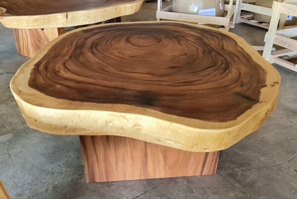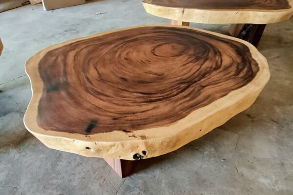 At FlowBKK, we work primarily with reclaimed and salvaged hardwoods sourced throughout Thailand, including rare timber from naturally fallen trees, storm recovery, and government-approved land clearing projects. These exceptional slabs are carefully selected for their grain movement, structure, and character, shaped over decades of natural growth.