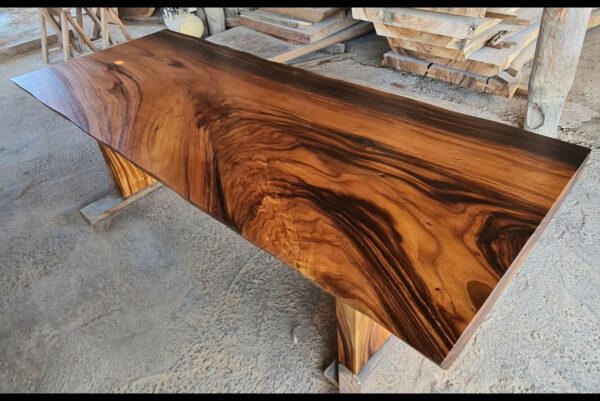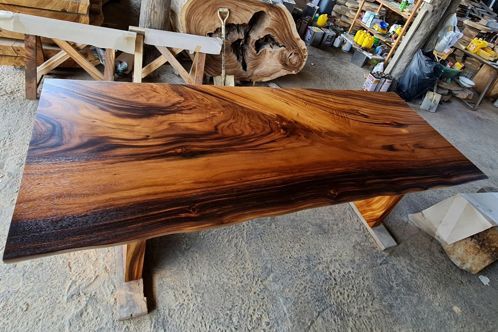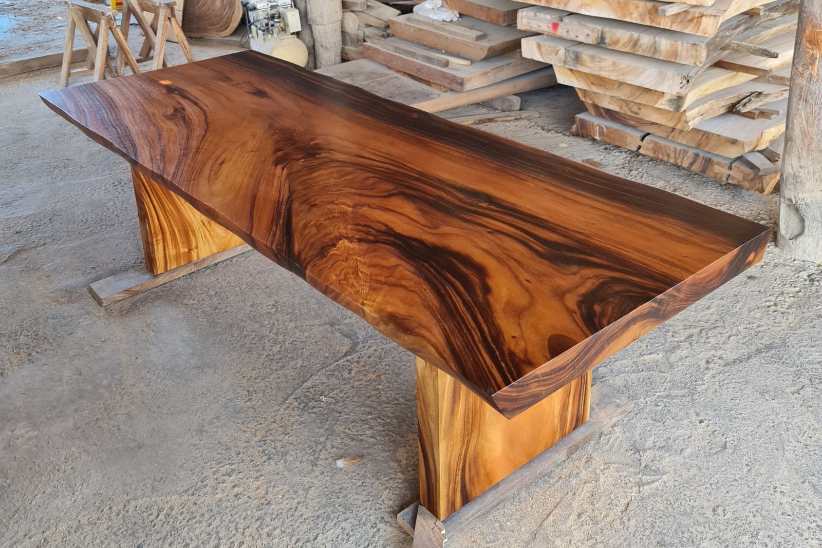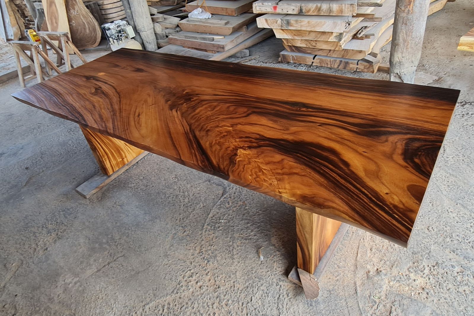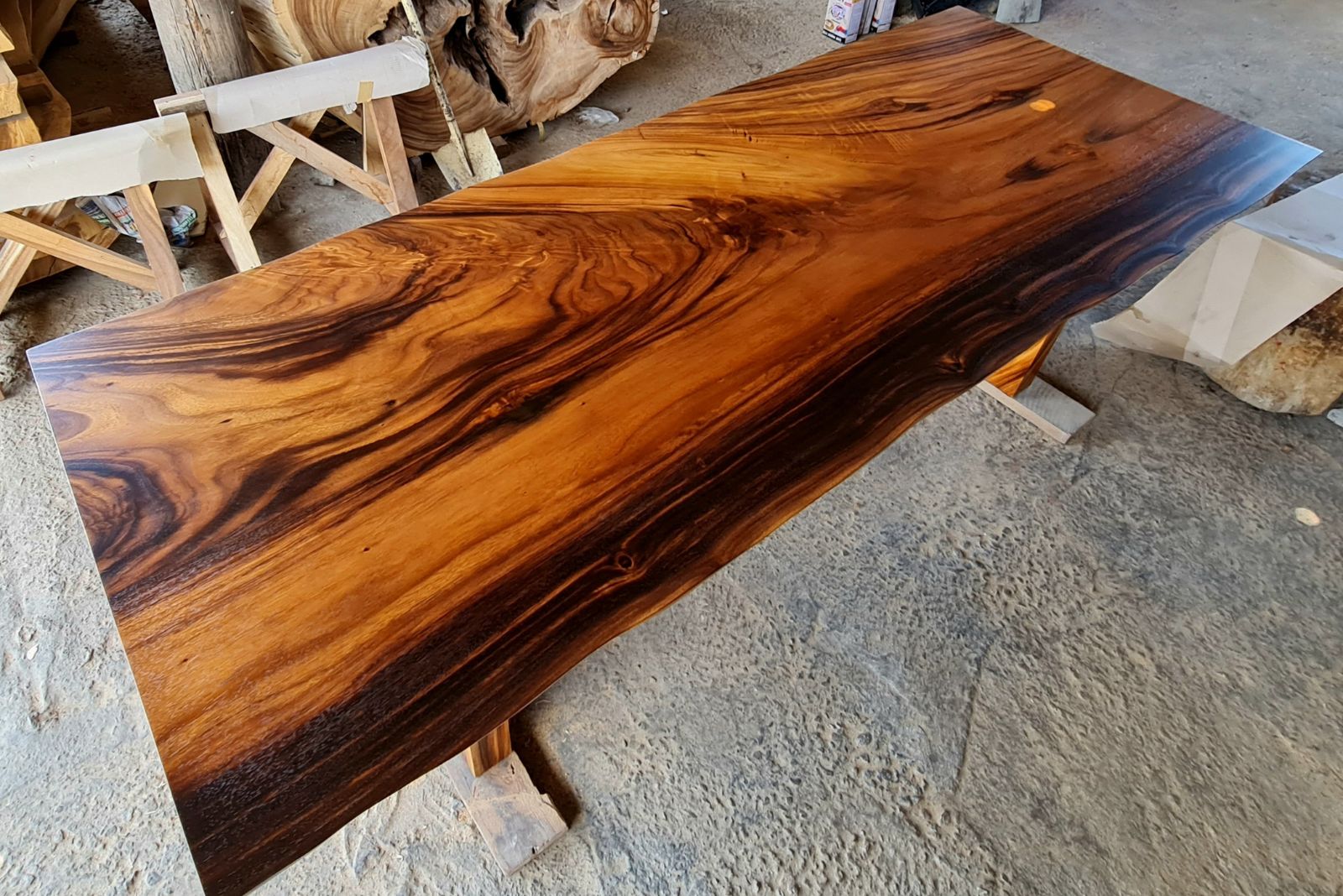 At FlowBKK, we work primarily with reclaimed and salvaged hardwoods sourced throughout Thailand, including rare timber from naturally fallen trees, storm recovery, and government-approved land clearing projects. These exceptional slabs are carefully selected for their grain movement, structure, and character, shaped over decades of natural growth.