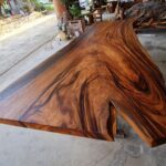 At FlowBKK, we work primarily with reclaimed and salvaged hardwoods sourced throughout Thailand, including rare timber from naturally fallen trees, storm recovery, and government-approved land clearing projects. These exceptional slabs are carefully selected for their grain movement, structure, and character, shaped over decades of natural growth.