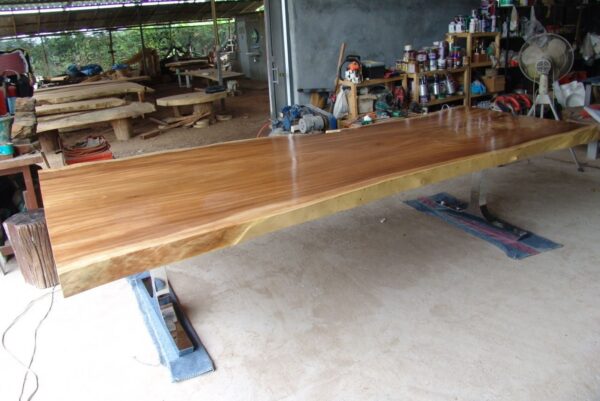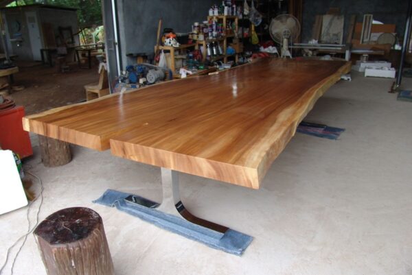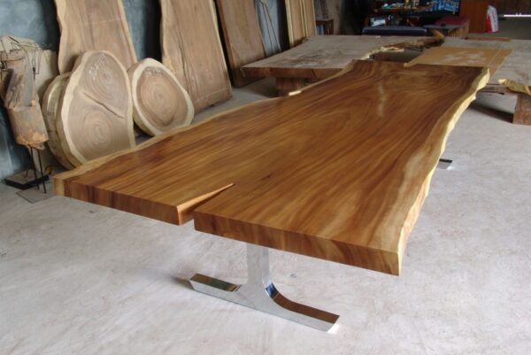 At FlowBKK, we work primarily with reclaimed and salvaged hardwoods sourced throughout Thailand, including rare timber from naturally fallen trees, storm recovery, and government-approved land clearing projects. These exceptional slabs are carefully selected for their grain movement, structure, and character, shaped over decades of natural growth.