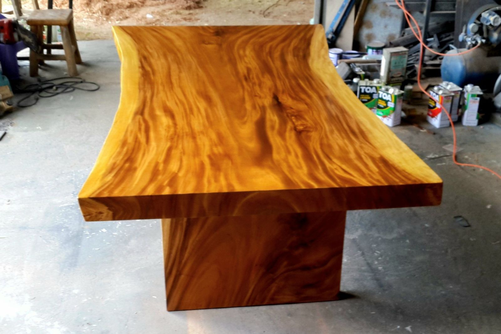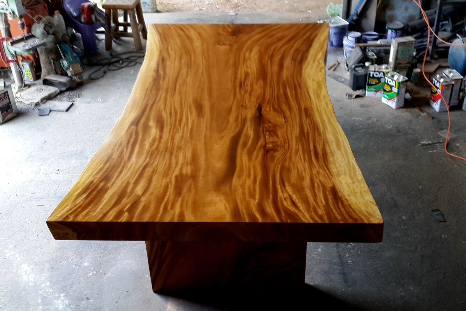 At FlowBKK, we work primarily with reclaimed and salvaged hardwoods sourced throughout Thailand, including rare timber from naturally fallen trees, storm recovery, and government-approved land clearing projects. These exceptional slabs are carefully selected for their grain movement, structure, and character, shaped over decades of natural growth.