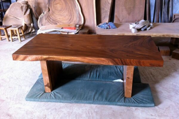 At FlowBKK, we work primarily with reclaimed and salvaged hardwoods sourced throughout Thailand, including rare timber from naturally fallen trees, storm recovery, and government-approved land clearing projects. These exceptional slabs are carefully selected for their grain movement, structure, and character, shaped over decades of natural growth.