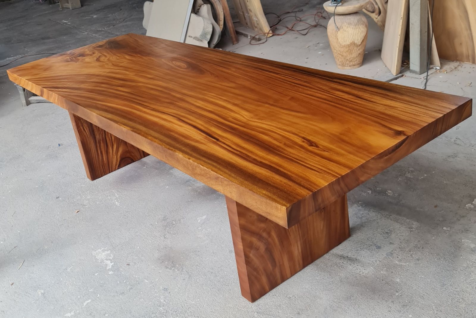 Bespoke Live Edge Golden Acacia Conference Table with Solid Slab Base Legs