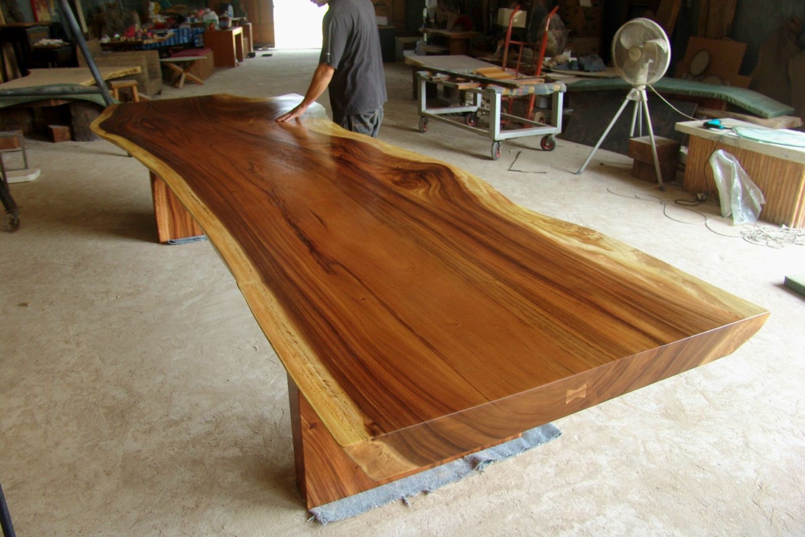 Bespoke Large Live Edge Golden Acacia Wood Slab Conference Table with Solid Wood Slab Legs