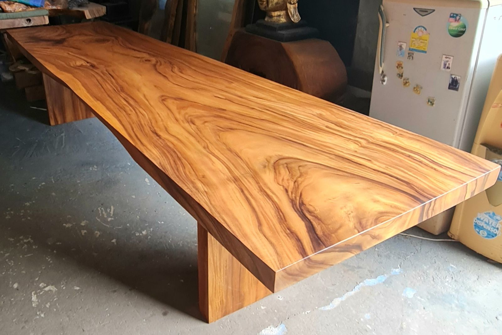 Bespoke Large Straight Edge Golden Acacia Conference Table – Single Slab with Matching Solid Wood Slab Legs
